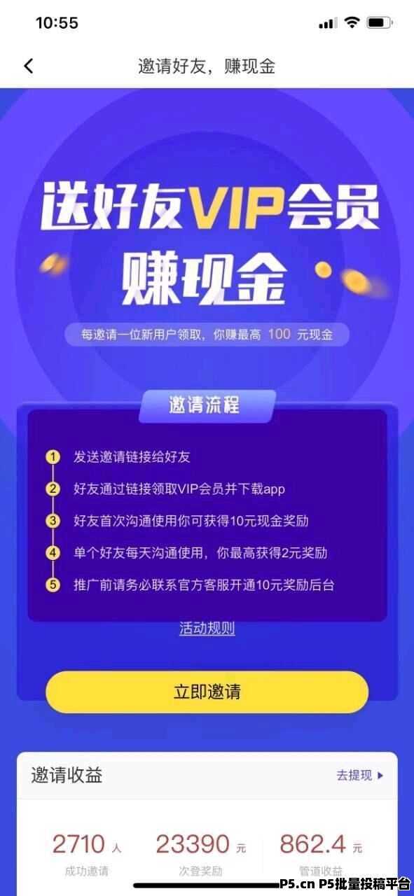 邀请100位每天活跃使用用户,每天可获得100元管道收益!