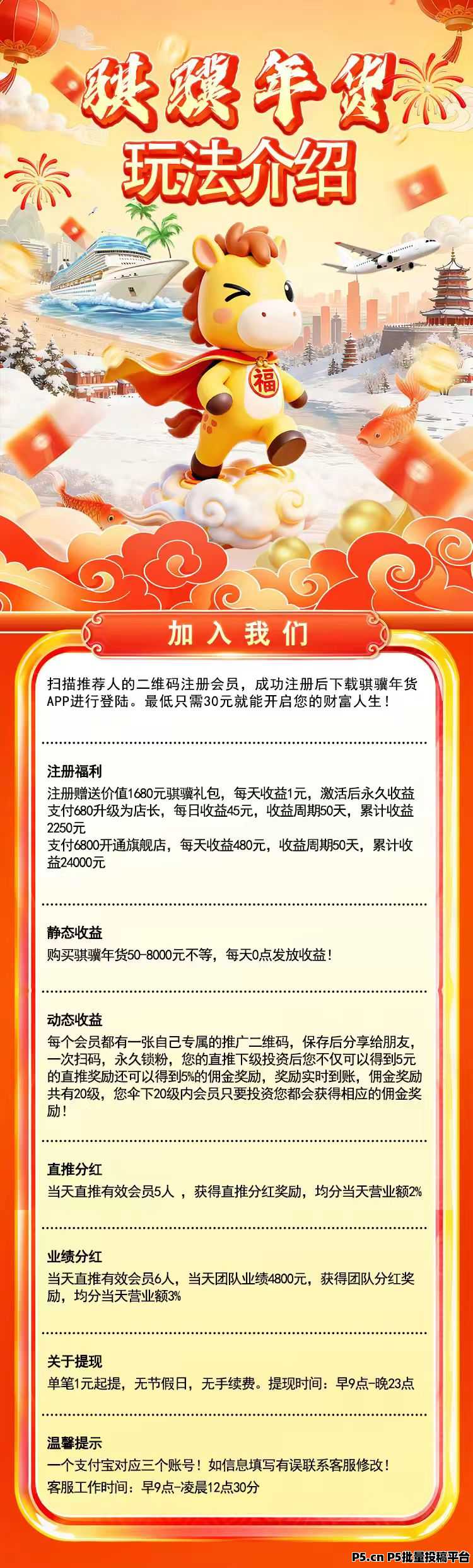 骐骥年货:实体项目,可随时考察 肥肉老母0003246 2026-02-18 15:10:01 1294 骐骥年货首码新年上线,新项目骐骥年货,最低下单50米,后续每天受益3元,1元起提,直推一人奖励7.5元,无上限零撸。实体项目,可随时考察,百度天眼可查。①级卦机50元,每天收益3元,每天可提现3元②级卦机200元,每天收益16元,每天可提16元③级卦机500元,每天收益53元,每天可提53元零撸也能一元起提(零撸推下级有佣金,直推5人每天领工资)加入680店长每天可收益提现48元加入6800旗舰店每天可收益提现520元